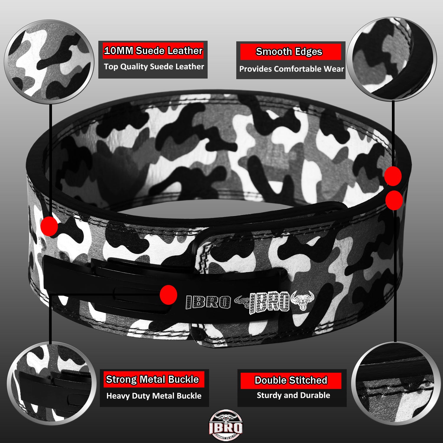 IBRO Powerlifting Lever Gym Belt Power 10MM Extreme Heavy Duty Genuine Leather Belt 10mm GreyCamo